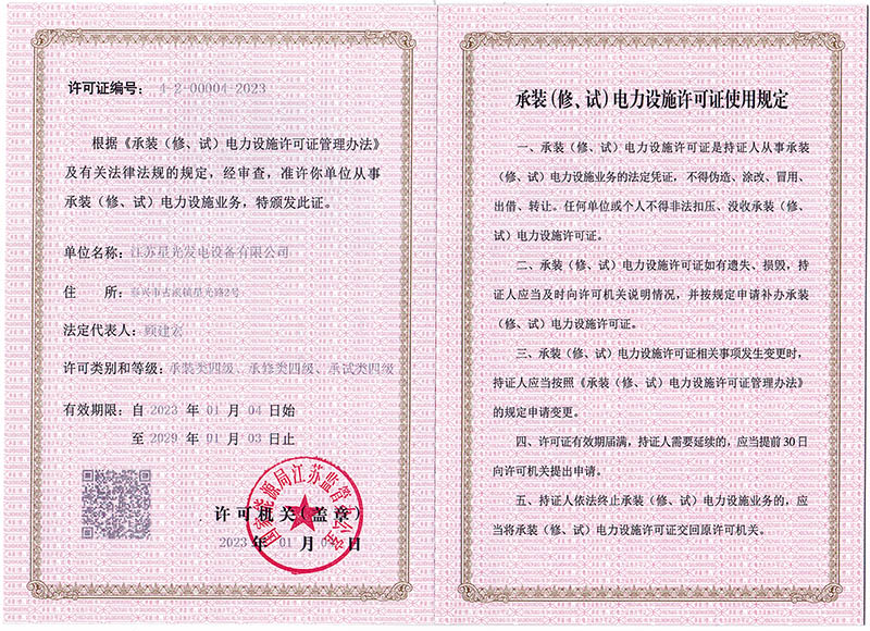 承装(修、试)电力施工许可证副本